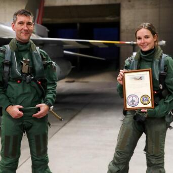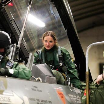2021年,挪威公主英格丽 • 亚历珊德17岁的年龄,实打实地乘坐挪威皇家空军的F-16BM战斗机在天上飞了一趟。